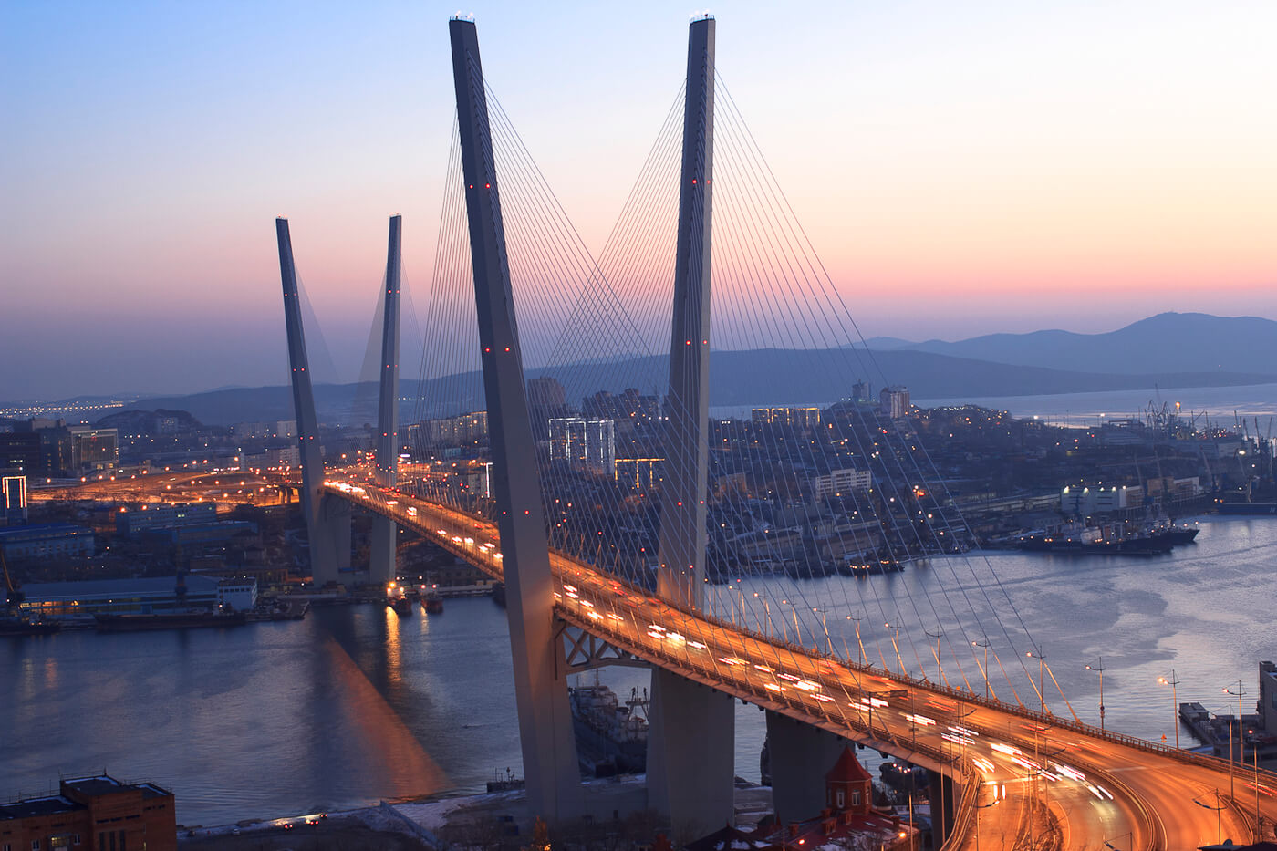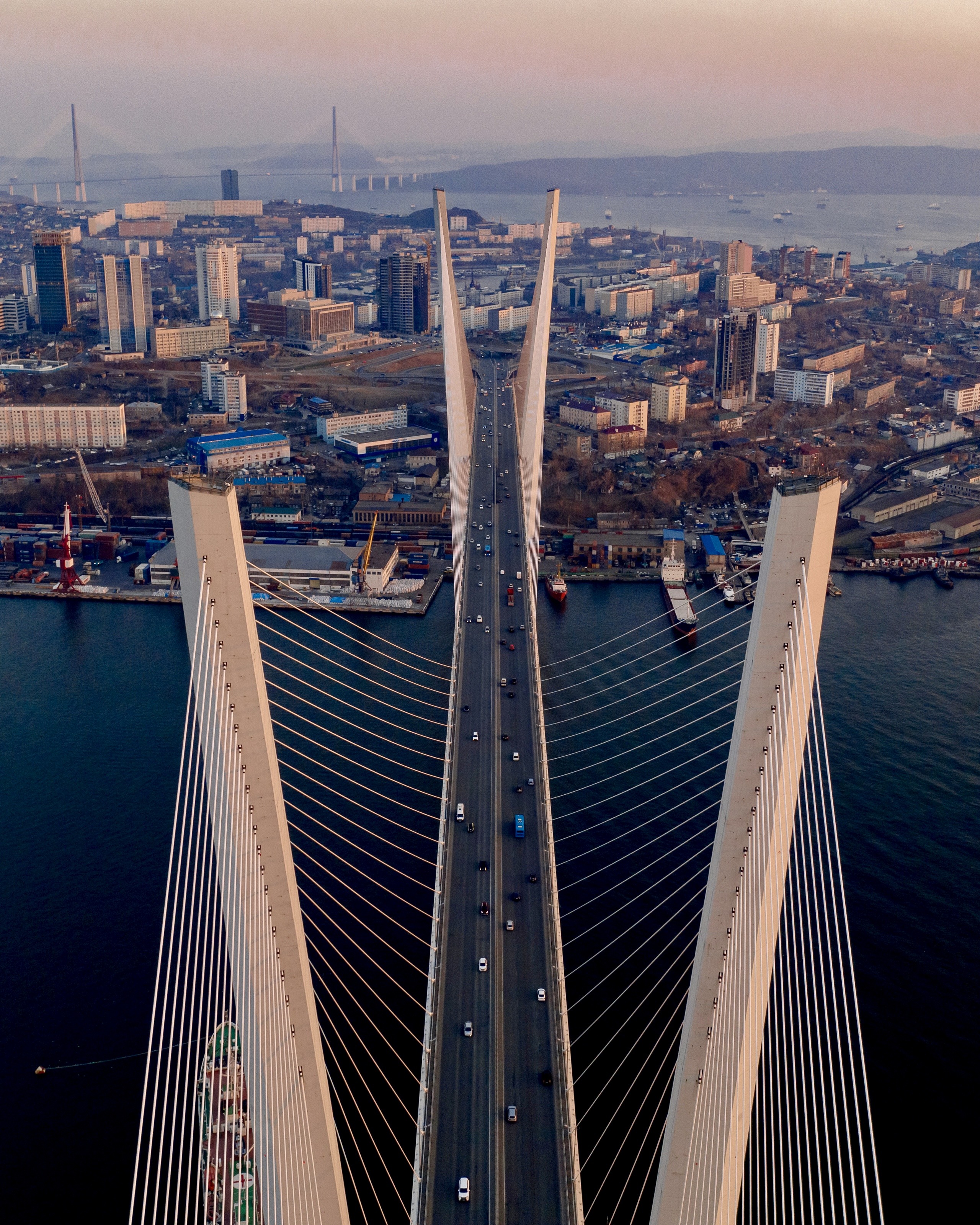 Мост соединяет центр Владивостока с полуостровом Черкавского через бухту Золотой Рог.