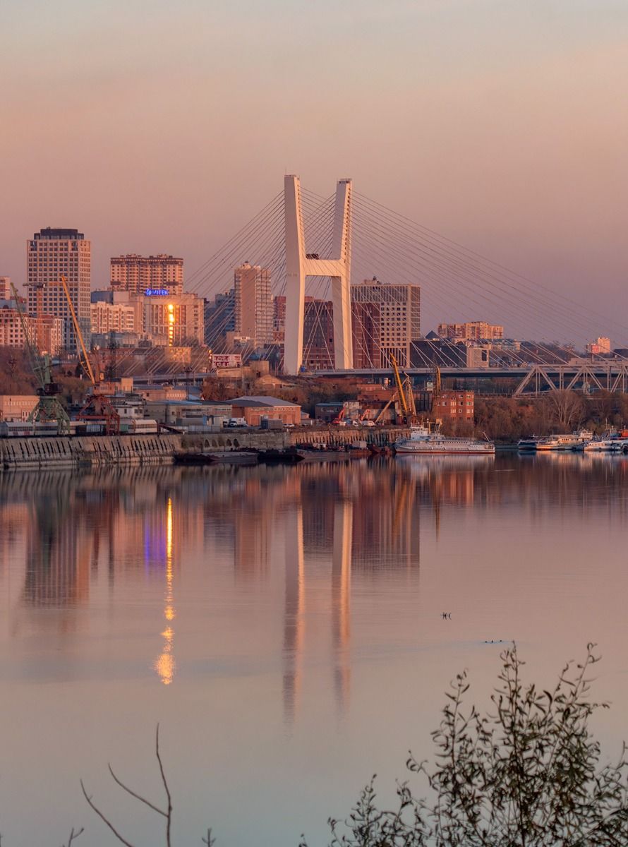 Мост соединяет центр Владивостока с полуостровом Черкавского через бухту Золотой Рог.